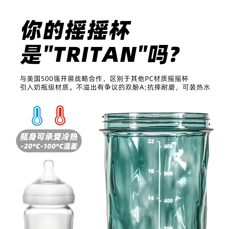 | 材质 | Tritan(杯身)、PP(杯盖)、316 不锈钢(搅拌球)、硅胶(密封圈) |